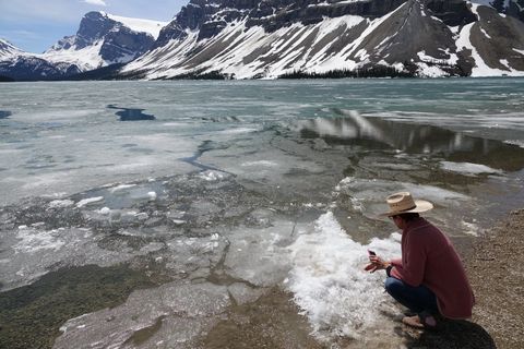 Wir standen wegen des Mietwagens etwas unter Zeitdruck und haben deswegen auf den Lake Louise und den Moraine Lake verzichtet. Aber wir waren dafür am Bow Lake. Er ist so wunderWunderWUNDERschön. Obwohl noch ziemlich zugefroren (immerhin 2080 m n.N.), hat er doch an vielen Stellen eine intensiv blaue und/oder türkise Farbe gehabt. Mit dem Bergpanorama im Hintergrund, sieht die ganze Kulisse doch ziemlich gephotoshoppt โ๏ธ aus.