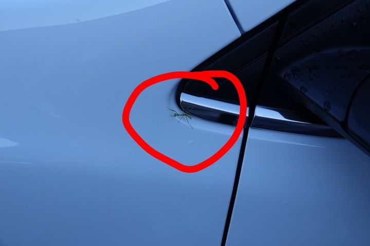 Diese kleine Gottesanbeterin saß heute Morgen auf unserem Auto. Harry sieht so etwas einfach immer. Ich hätte sie wahrscheinlich übersehen.