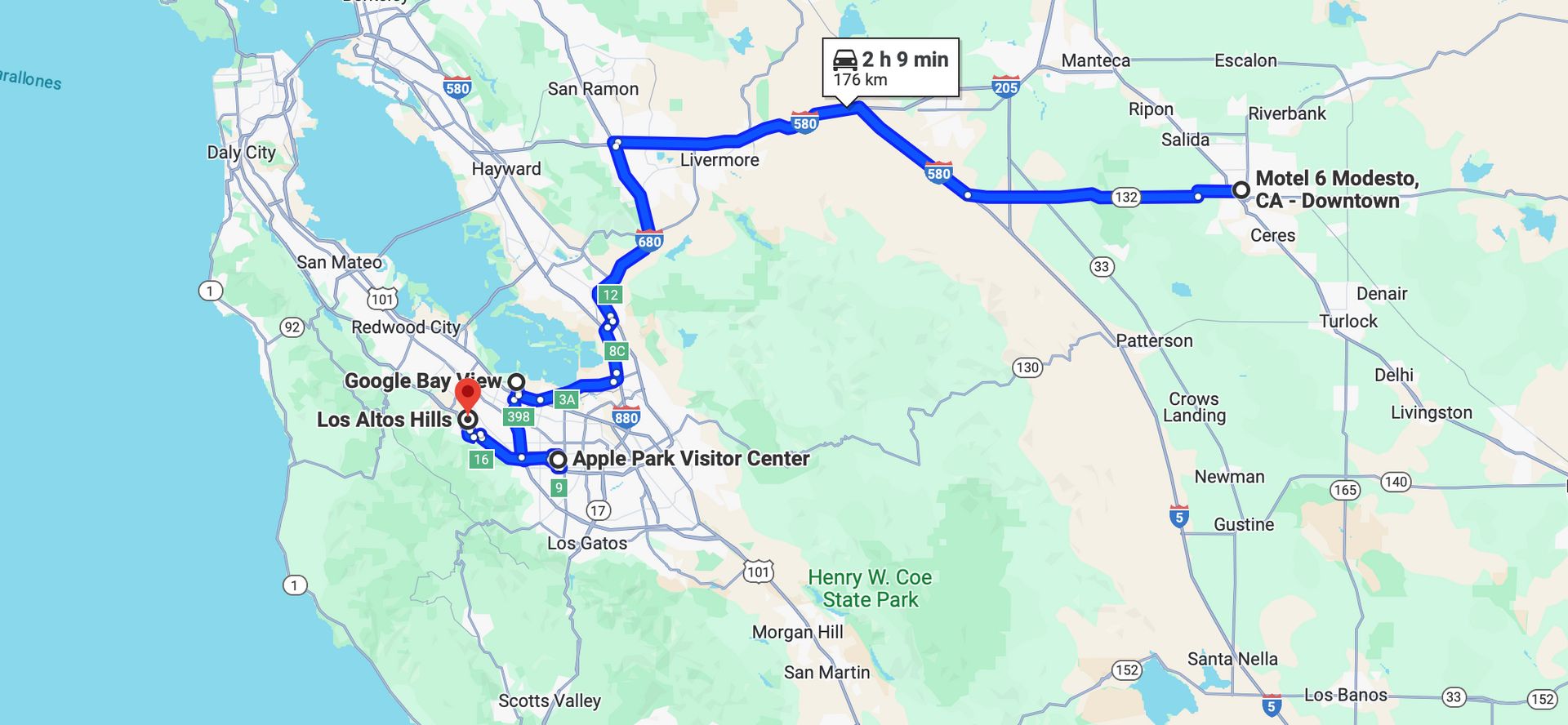 Auf dem Weg zum Date mit Apple ๏ฃฟ, machen wir einen kleinen Abstecher zu Google. Sie haben ein sehr interessantes Gebäude errichtet. Leider war alles geschlossen, denn es ist ein Feiertag.