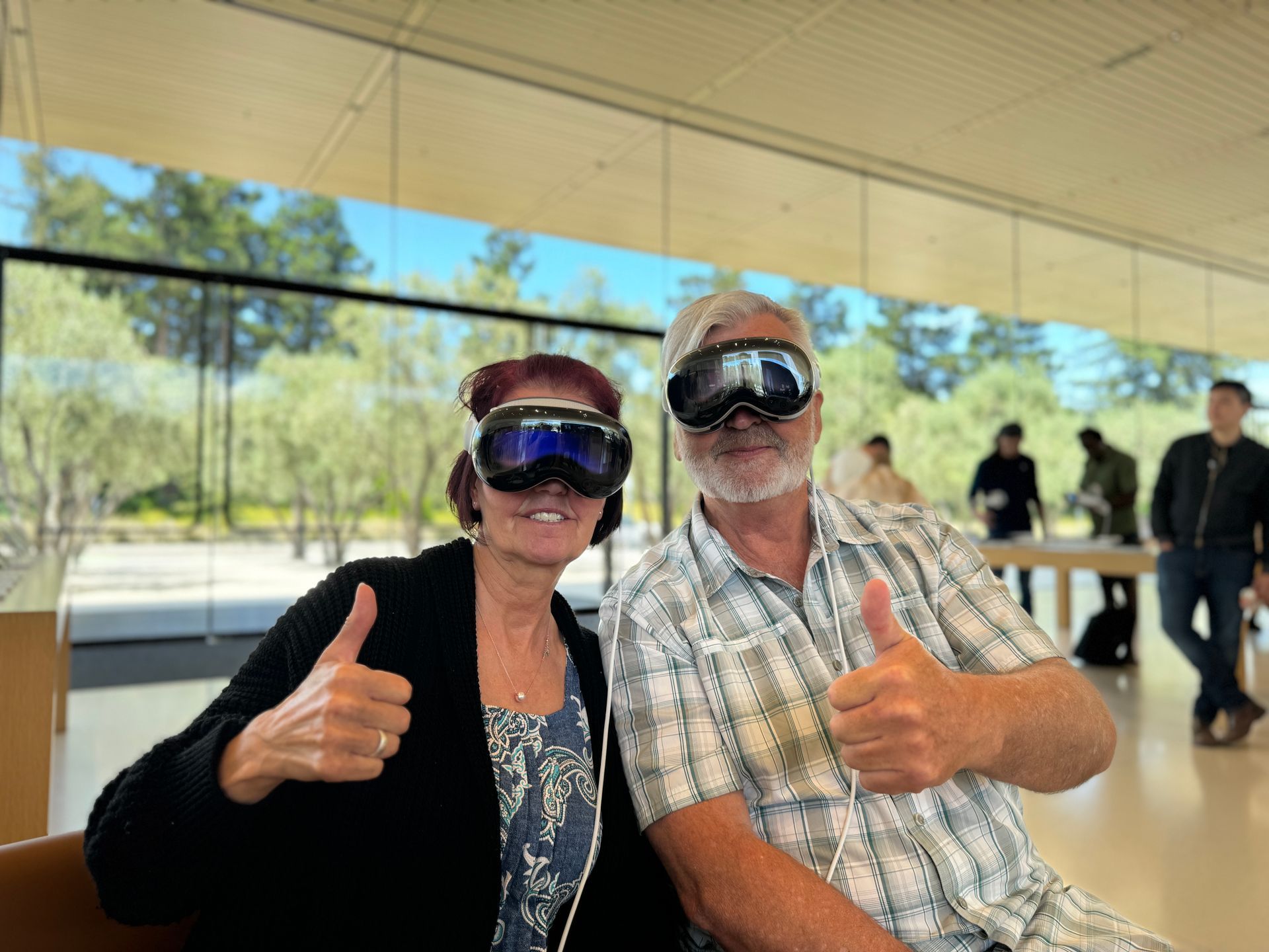 Skyler hilft mir beim Aufsetzen der "VisionPro". Er hat einen guten Job gemacht und uns gut durch die Demo geführt.