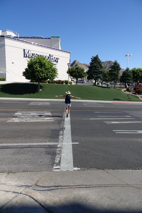 Unser Hotel von dieser Nacht stand fast auf der Grenze zu Nevada. Wir haben uns gestern schon gewundert, warum die eine Hälfte des Ortes ziemlich trostlos wirkt und die andere mit riesigem Hotel, Casinos und viel Bing Bling so voller Leben. Nun ist es uns klar. Die eine Hälfte gehört zu Utah und die andere zu Nevada.