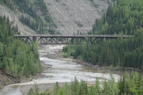 Da wir ja auf dem Alaska Highway unterwegs waren, haben wir uns damit beschäftigt und wußten, dass es noch alte Teile davon gibt. Gestern auf einer Picknick Arena bekamen wir von ein paar Österreichern den Tipp, wo wir noch einen alten Teil befahren und vor allem, über eine Holzbrücke fahren können.