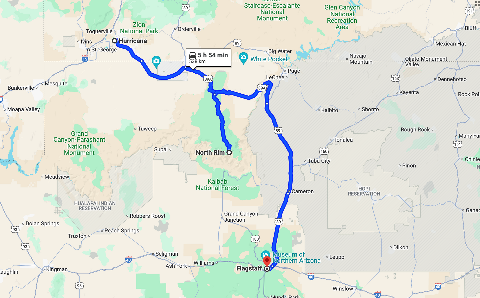 Wir wollen heute noch einmal in den "Grand Canyon Nationalpark" fahren. Am South Rim waren wir schon 2 Mal, diesmal soll es der North Rim sein.