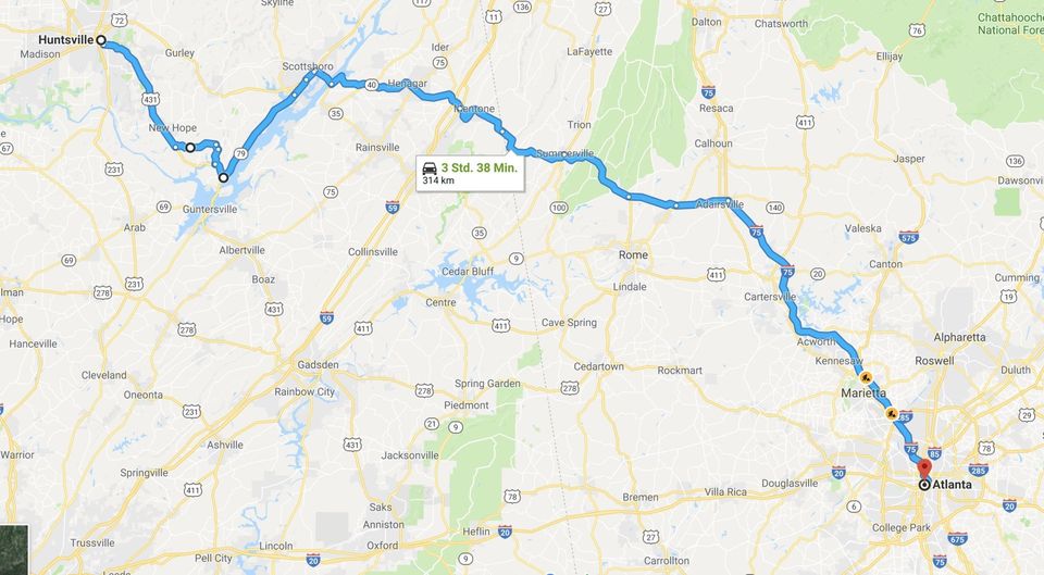 Okay, jetzt aber weiter nach Atlanta. Wir kommen so richtig in den dicksten Verkehr. Aber der Zeitverlust hielt sich in Grenzen.