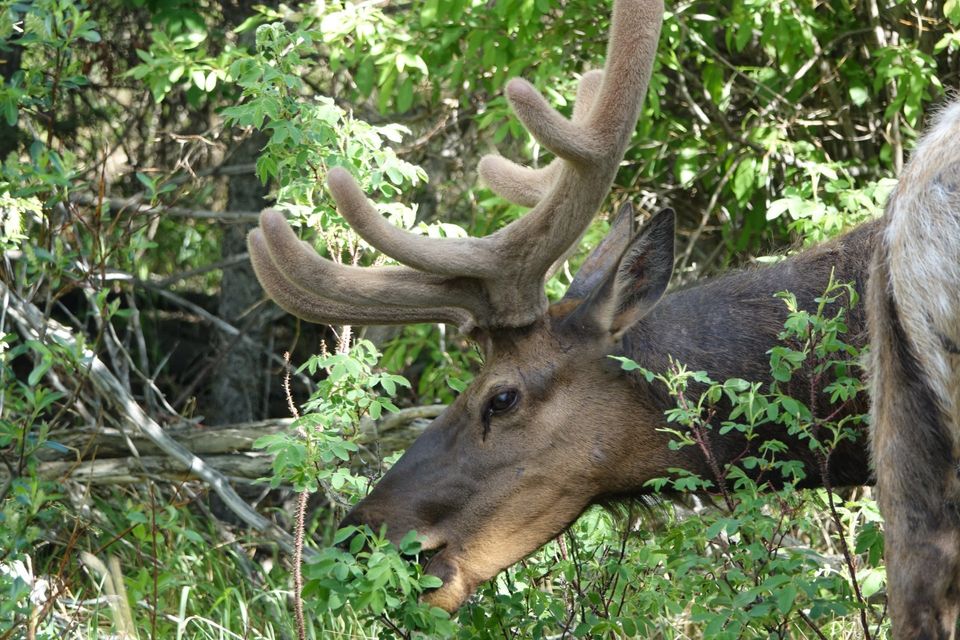 Ach wie haben wir uns gefreut.....wir haben heute einen Elk gesehen. Er stand direkt am Straßenrand und all die Touristen waren ihm völlig egal. Ich habe trotzdem immer den Fluchtweg im Auge behalten.....ist ein wildes Tier.