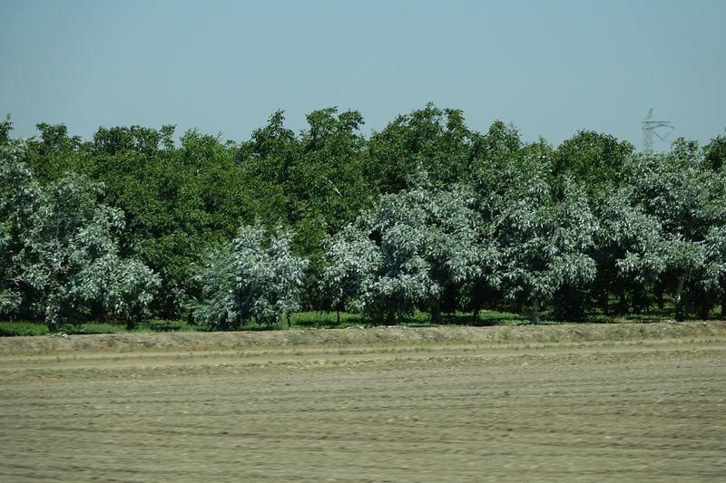 Auf dem Weg haben wir diese weißen Bäume gesehen. Nur die äußeren waren weiß, der Rest völlig normal.