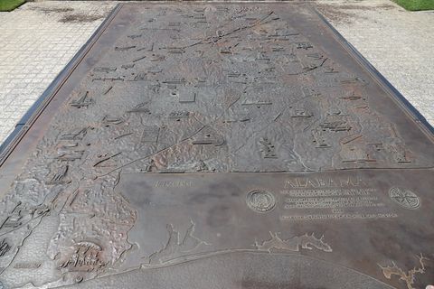 Vor einem der Gebäude "lag" diese Karte von Alabama. Wie wir Deutschen nun einmal sind, gehen wir über keinen Rasen und schon gar nicht trampeln wir auf irgendwelche Landkarten rum, die eh schon am Boden liegen...😆