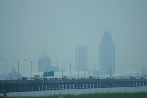Dann sehen wir die Skyline von Mobile, unserem Zwischentagesziel. Wir wollen uns die