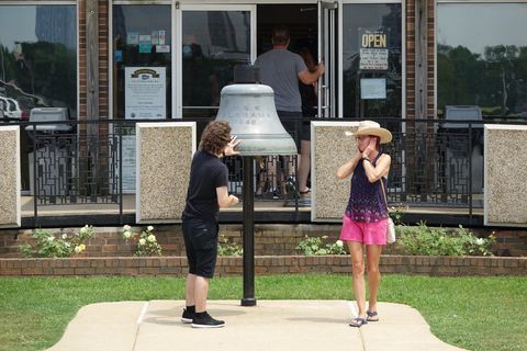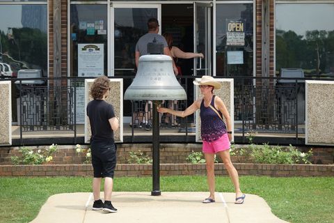 Ich muss ja unbedingt diese Glocke läuten und dass obwohl ich auf laute Geräusche oder Stimmen sehr empfindlich reagiere. Ich hatte die Lautstärke einfach unterschätzt. Ben hat sie zum Glück gleich zum Schweigen gebracht.