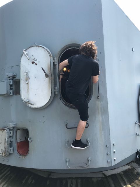 anschauen. Ein Kriegsschiff. Für Harry ist es nicht so ganz neu, für Ben und mich schon.