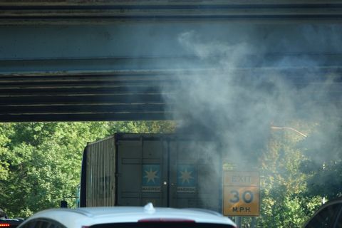 Vor uns plötzlich ein brennender LKW. Wir versuchen noch schnell vorbei zu kommen um nicht möglicherweise stundenlang im Stau zu stehen. Komisch nur, dass der LkW an der nächsten Abfahrt vorbei fährt π€