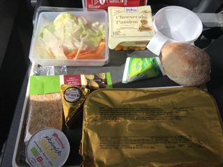 Bei 12 Stunden im Flieger, freut man sich sogar über das Essen. Es war aber okay. Ich fand die kleinen Milchtüten so süß.