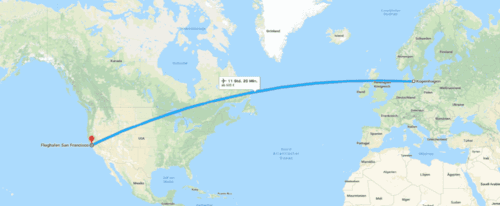 So Teil 2 unserer Anreise hat optimal geklappt. Wir sind in Kopenhagen mit leichter Verspätung angekommen, mussten 6 min bis zum nächsten Gate laufen und nach ein paar Minuten begann schon das Boarding für den Flug nach San Francisco.