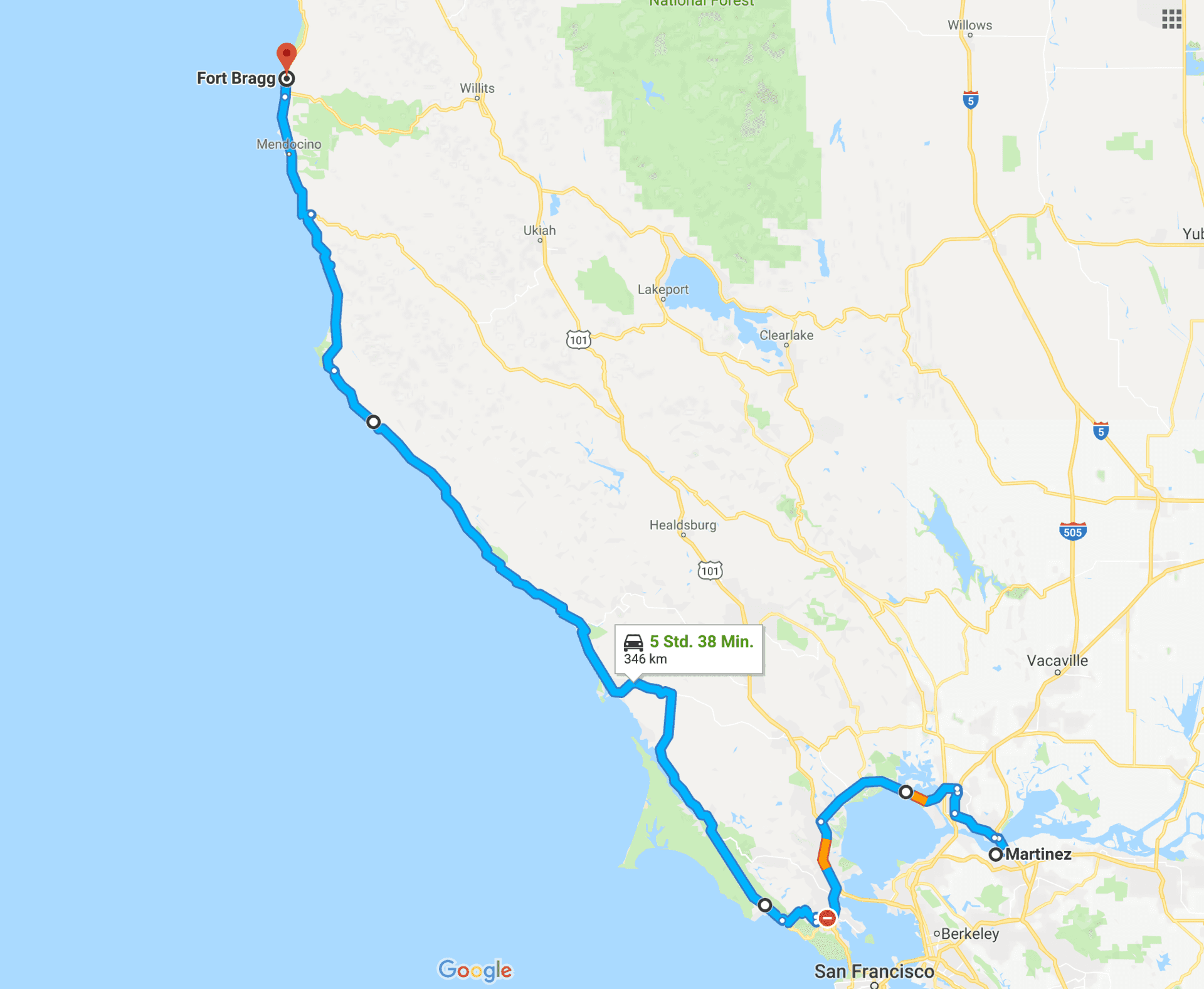 Pünktlich zum Sonnenuntergang waren wir in Fort Bragg und anschließend noch im Dennys essen.